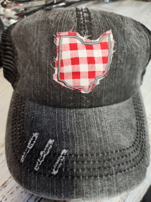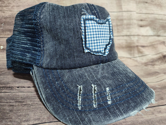 Unstructured, worn-in VINTAGE TRUCKER HATS STATE of OHIO